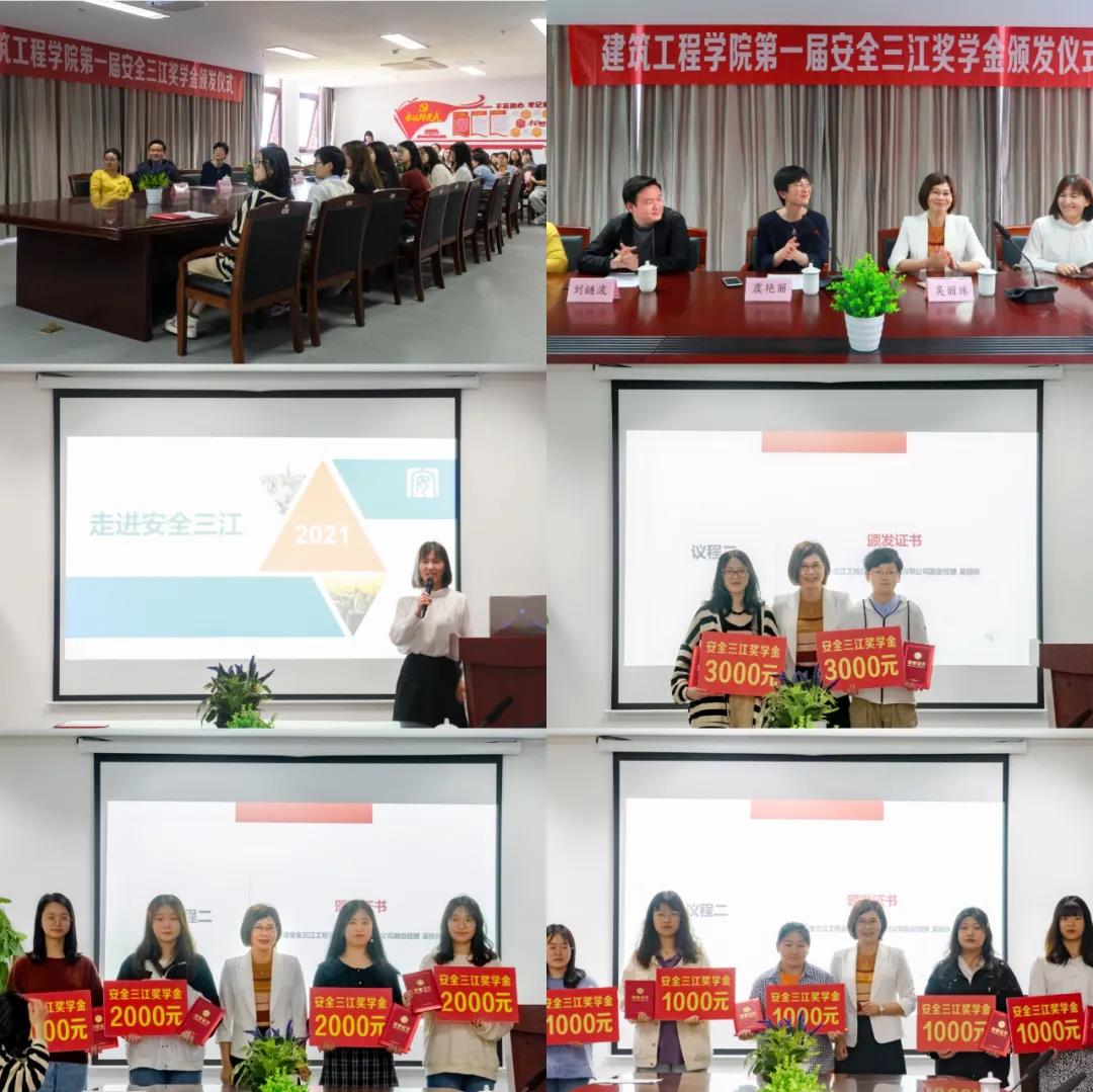 4月26日,宁波大学科学技术学院建筑工程学院举办“安全三江”奖学金颁发仪式,安全三江副总经理吴丽珠、办公室主任贺仙凤参加了本次活动。多年来,安全三江一直与多所高等学院保持着良好的校企合作关系,除提供实习期的实践工作机会、与院校合作成立“学生实操工作室”外,还为优秀的在校大学生提供奖学金,激发广大学生的学习积极性,营造优良学风,培养学生成为知识、能力、素养三位一体的专业人才。